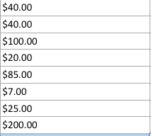 Cells in the third group are formatted as Currency with two places after the decimal.