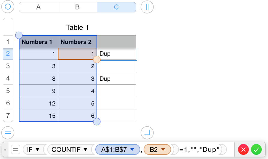 But it didn't work it, it gave me an orange triangle and seemed to only find duplicates in the same row. I am trying to find duplicates in the same column. Here is the support page if interested:How to merge two list
