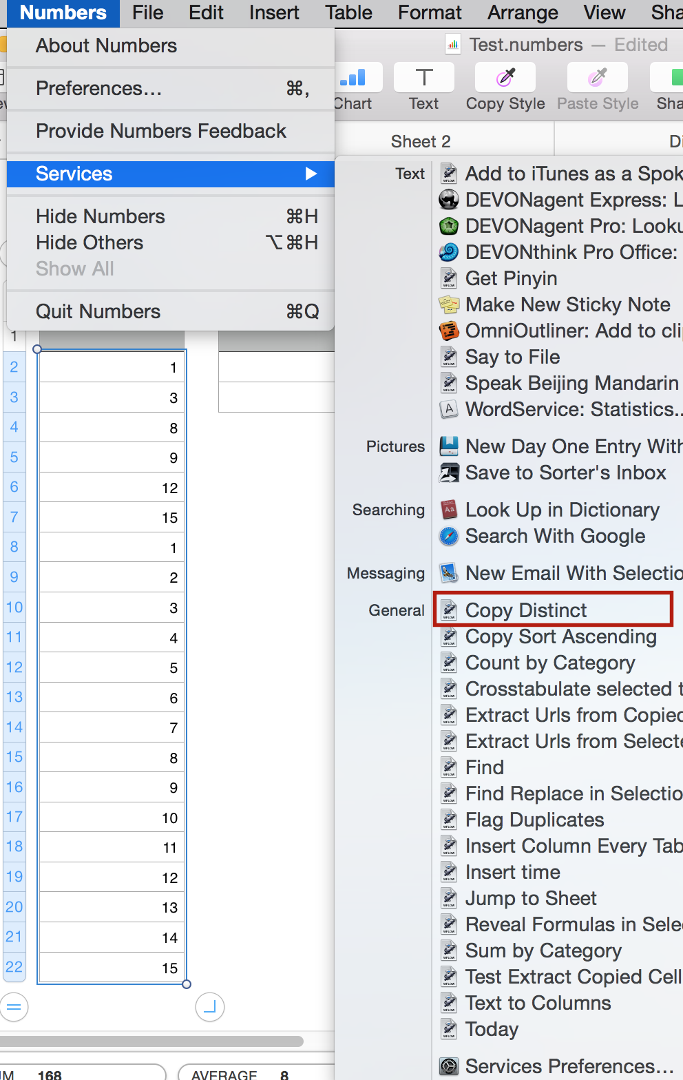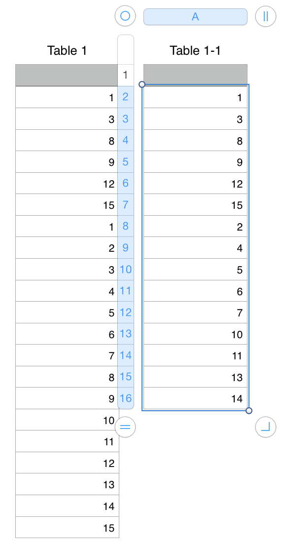 I want to copy the 15 values from Numbers 2, paste it in Numbers 1. Then sort everything from ascending to descending. I've been successful up to this part. Now I would like to remove all the identical values automatically. This where I am having issues.