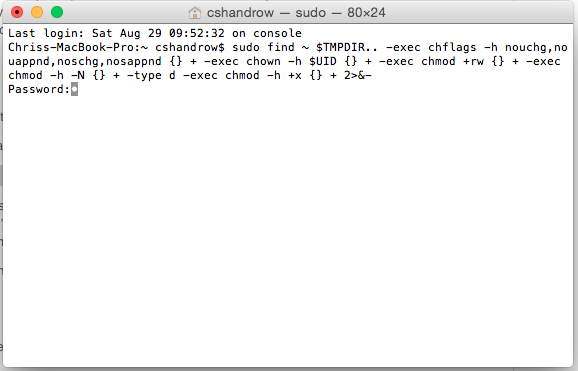 9. If you see an error message in the Terminal window such as "Syntax error" or "Event not found," enter