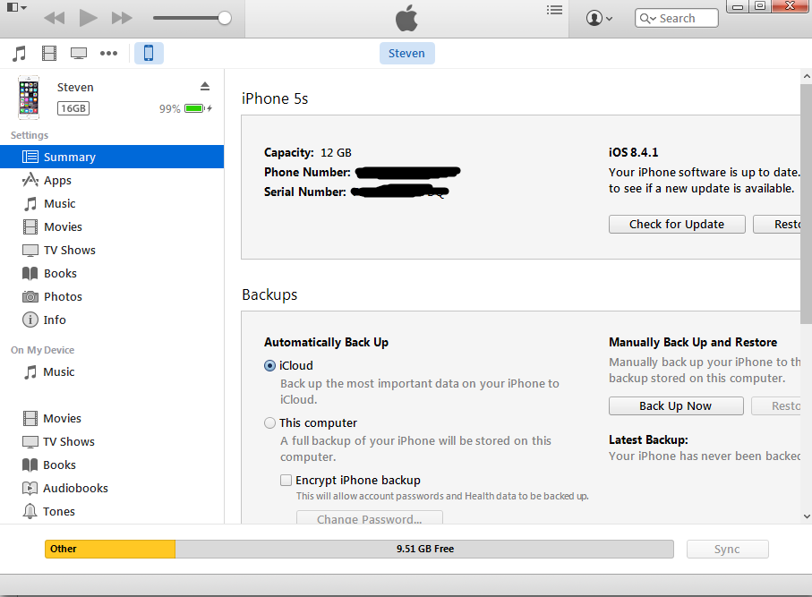 So I recently upgraded both my itunes and my Iphone 5s to the latest versions and now I can not sync with my itunes. Also everytime i check i have less and less free space on my phone and the only data to show up is other. I have tried reinstalling itunes multiple times and have also restarted my computer if that helps.