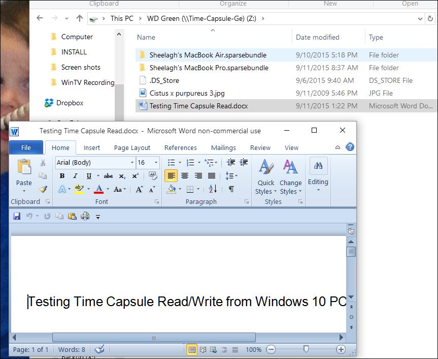 I have a time capsule 3rd generation (A1355). I have a mac and a PC in my household. I was able to backup both computers to it until recently. About a month ago I upgraded the PC to Windows 10. Since then I've been having problems with the PC backup to the time capsule. The mac can read and write to the time capsule without any problems. On the PC, using Windows Explorer I'm able to see the time capsule, and access all the files. However, I'm unable to write any files to the time capsule. When try to manually copy and paste a file from my C Drive to the time capsule using Windows explorer I get an error: can't read from the source file or disk. Whenever I try to do a backup using Comodo backup, I also get a write error.