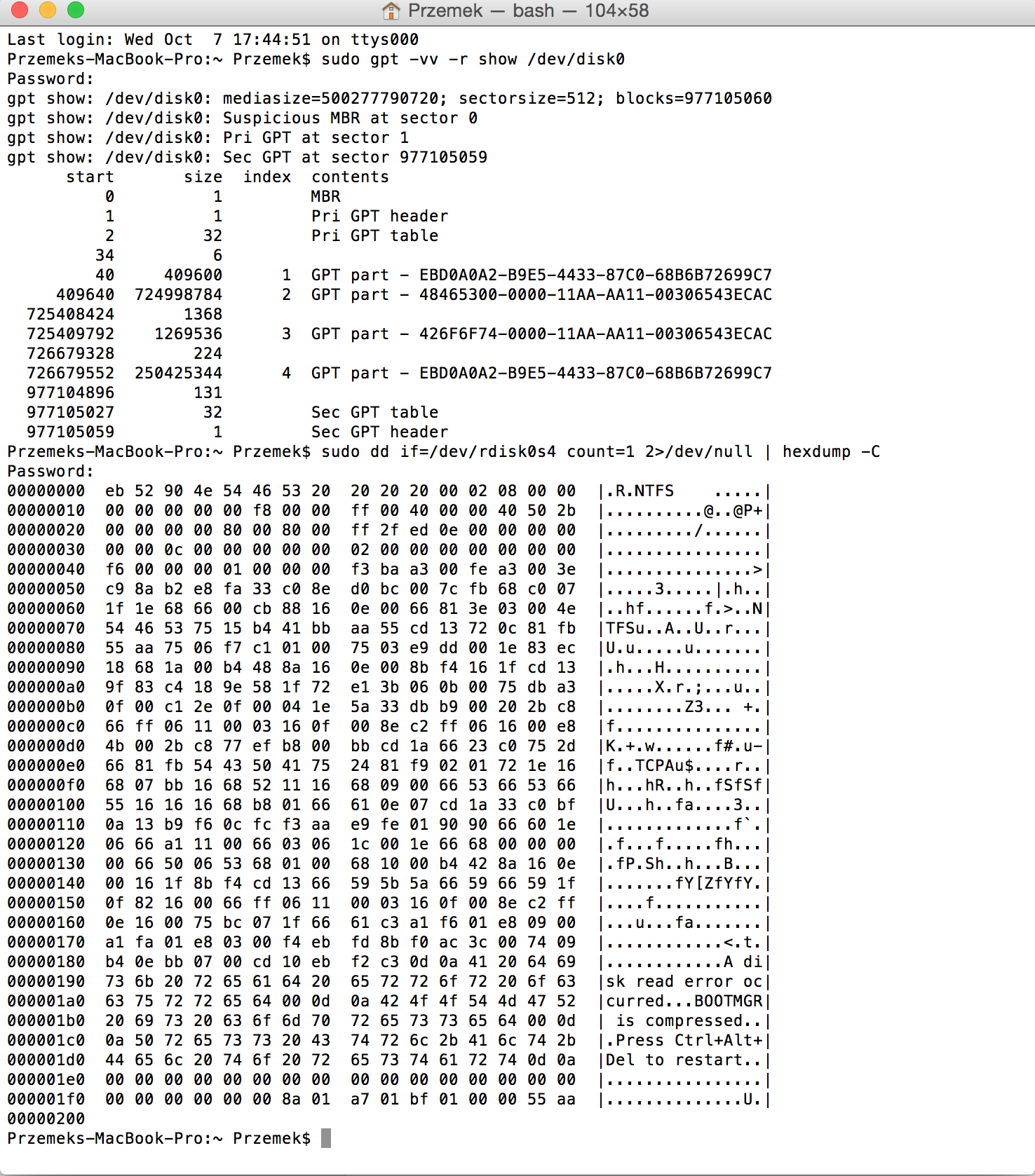 What now? Am I clear to proceed with rebuilding GPT4 using your guide and the start/size digits for the Bootcamp partition showing up in both terminal and Testdisk above? Or do I need to dig deeper?