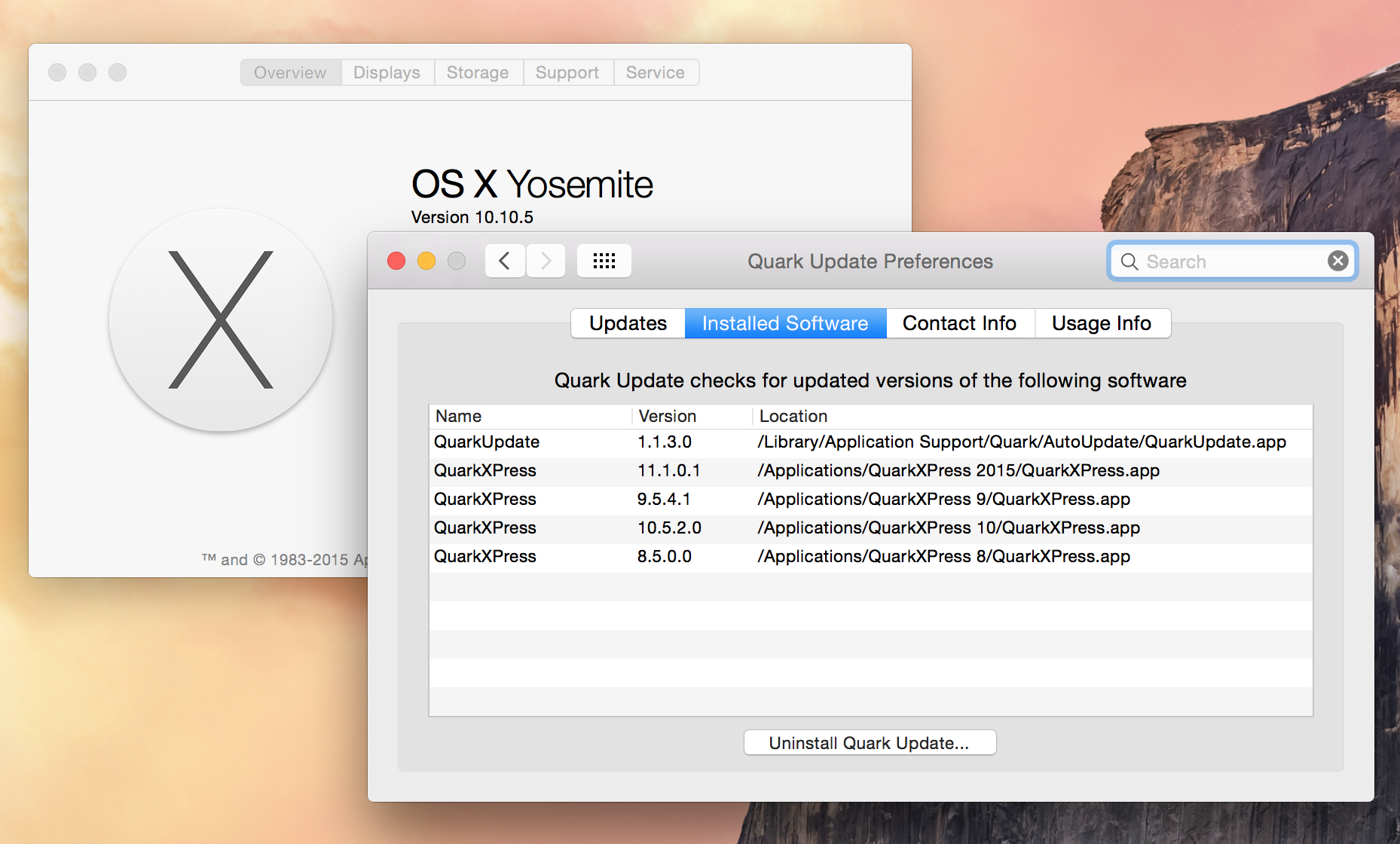 However if you need an officially supported version of QuarkXPress under Yosemite, you need to use QuarkXPress 10.5 or QuarkXPress 2015 please. QuarkXPress 2015 will also support El Capitan in a few days.