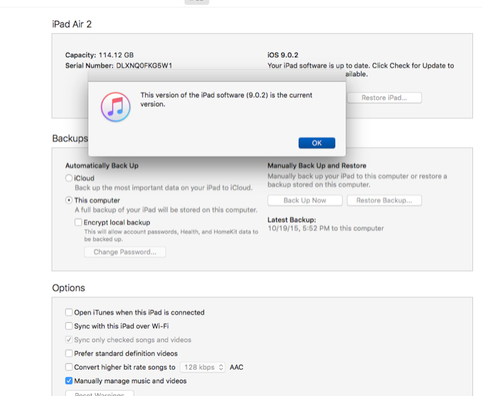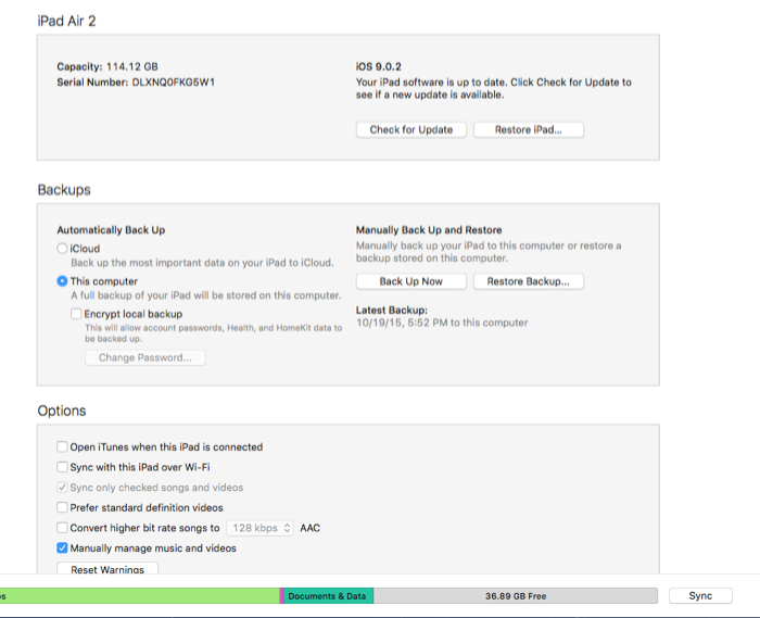 And the same iPad Air 2, viewed in iTunes on iMac 27 in El Capitan