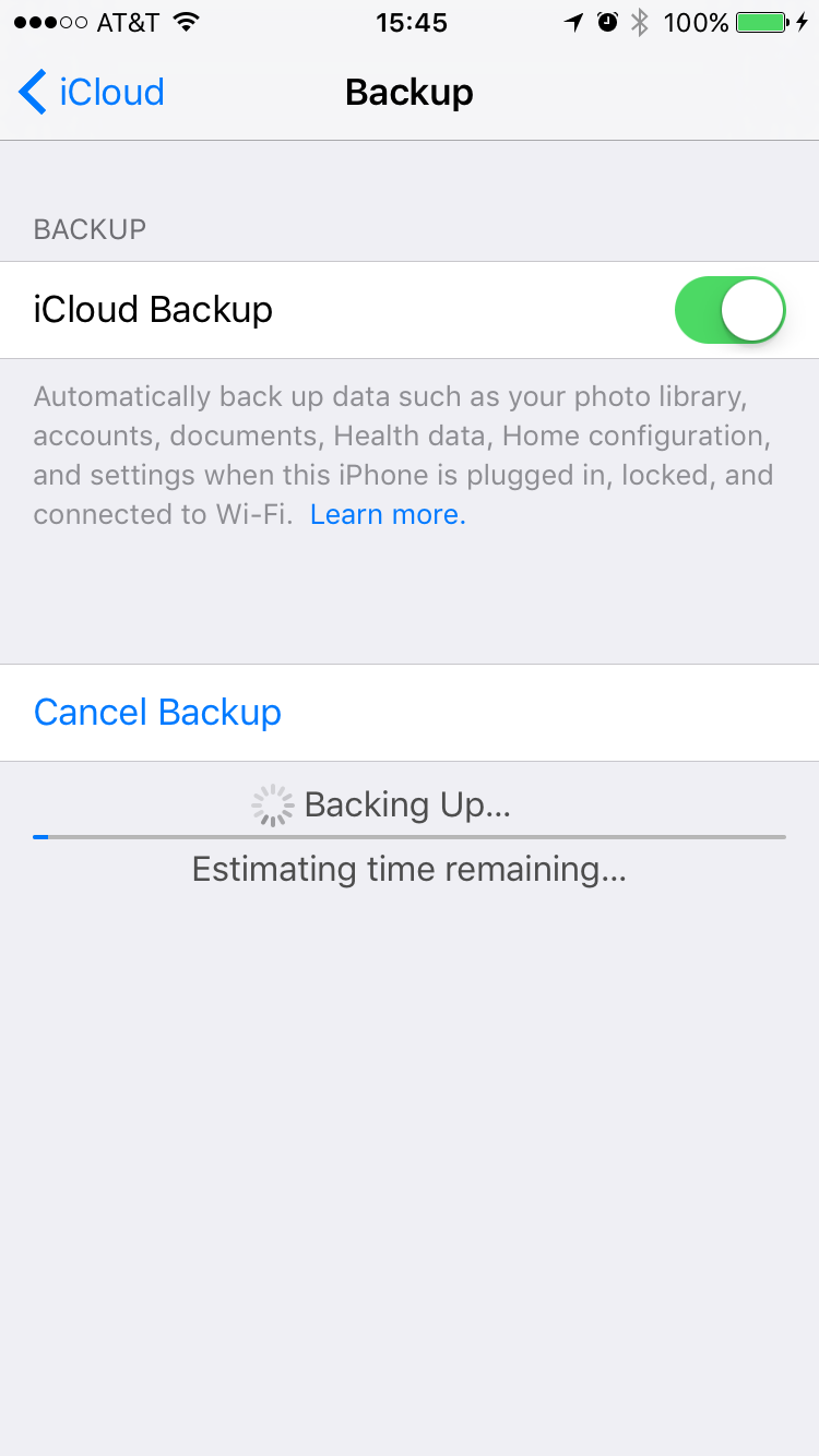 iCloud Backup on both my iPhone and iPad have been working fine for years until I upgraded to iOS 9. After the upgrade it said my latest backup was "Never". When I pressed "Backup Now" the progress bar flashed quickly then went back to saying my latest backup was "Never" (no error messages).