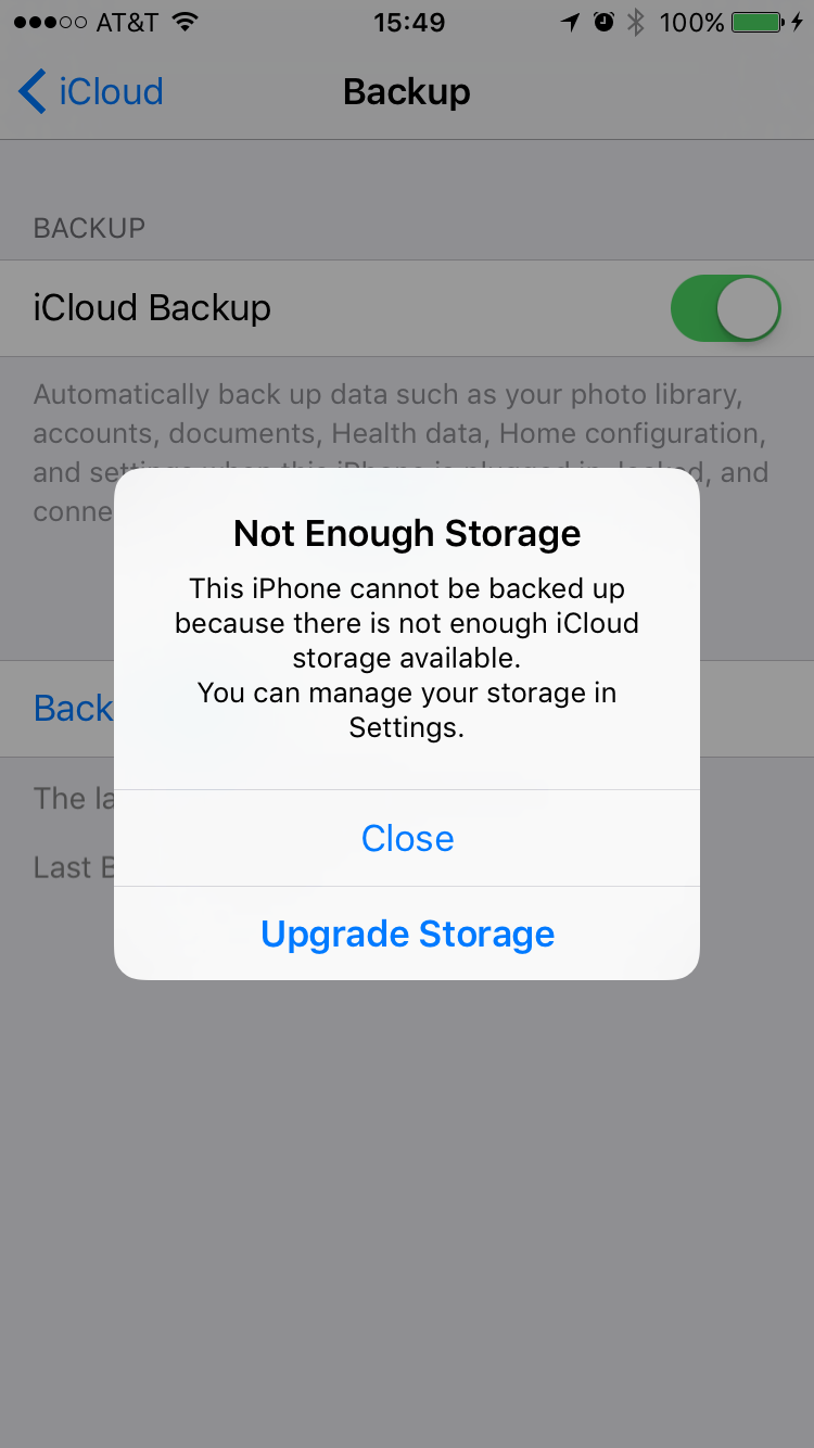I decided to try turning iCloud Backup off and back on again. When I try to turn in on it says "iCloud Backup Failed. There was a problem enabling iCloud Backup.".