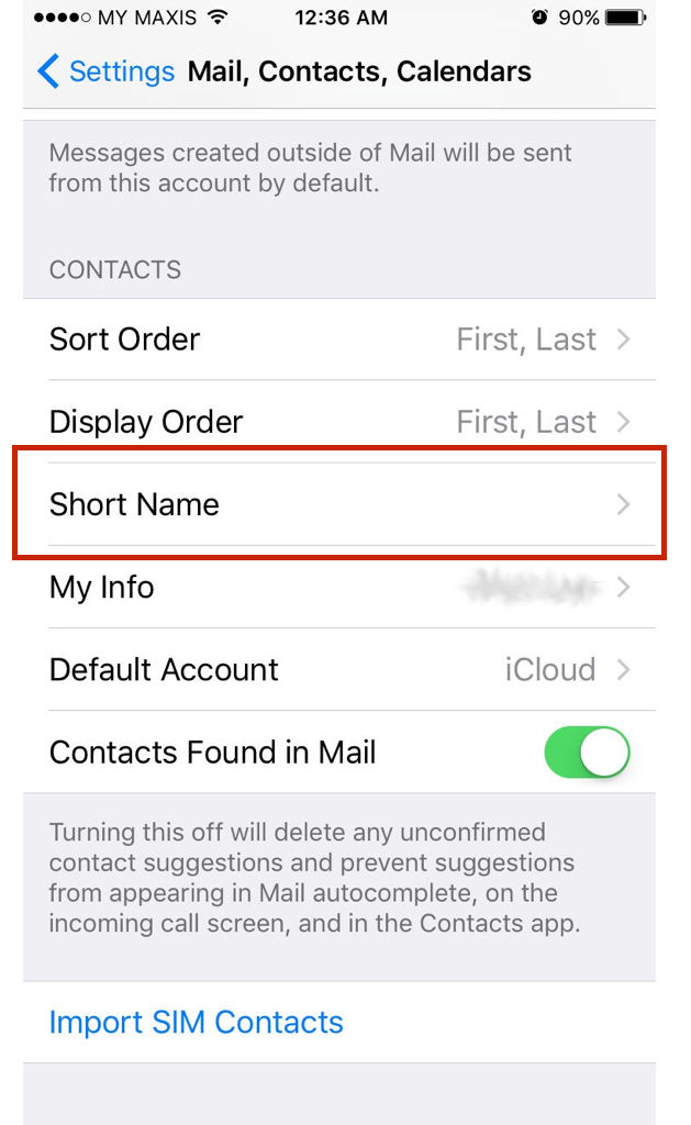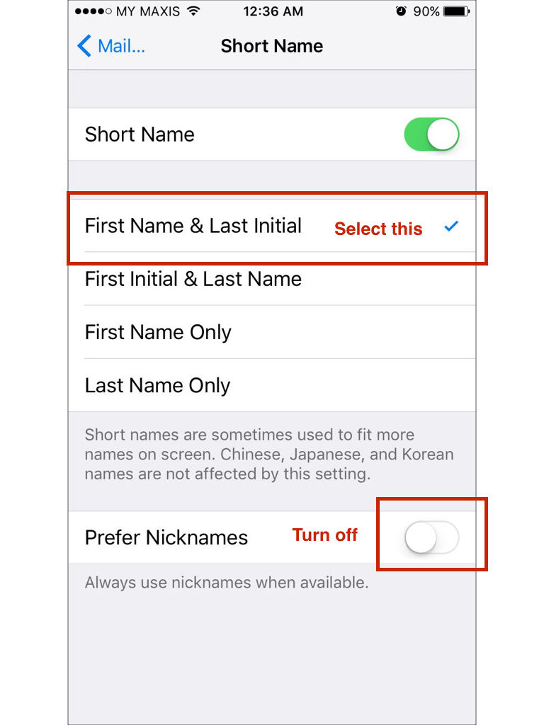 Goto Settings -> Mail,Contacts, Calendars -> Short Name (under CONTACT at bottom of page) -> do 2 things here: