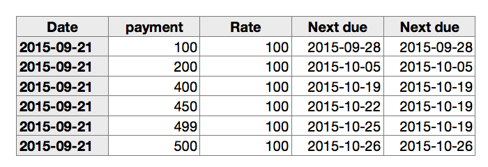 I'm wondering if there is a way to format a column so that when I put the rent paid in one column, it automatically calculates the date it is paid up till? The rent is rarely paid weekly, it might be 2, 4 or 5 weeks at a time so I was hoping to be able to have a column that calculates when it is due again.
