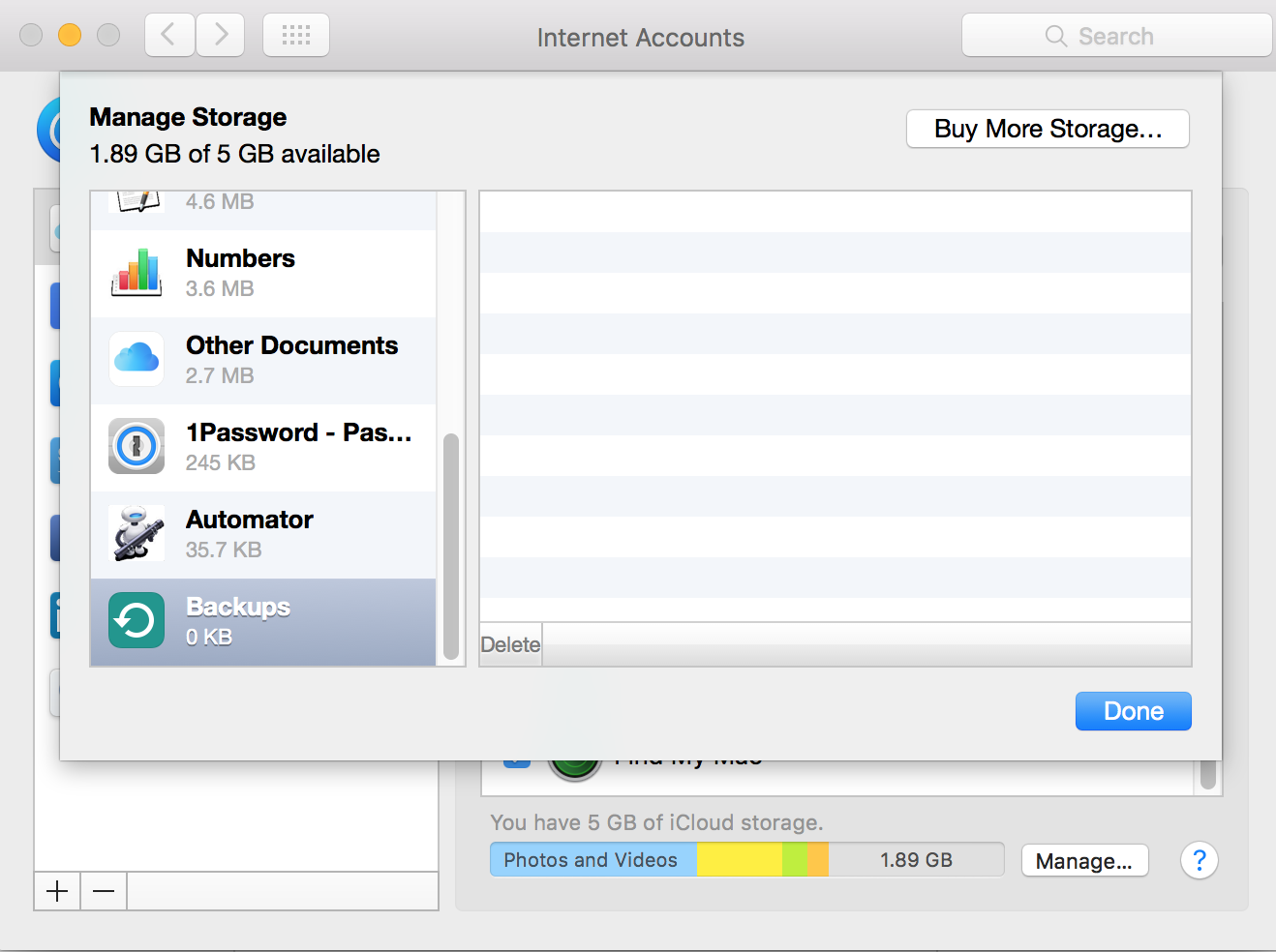 When I try to edit (delete some) this I can only see one backups of 1.2 GB: