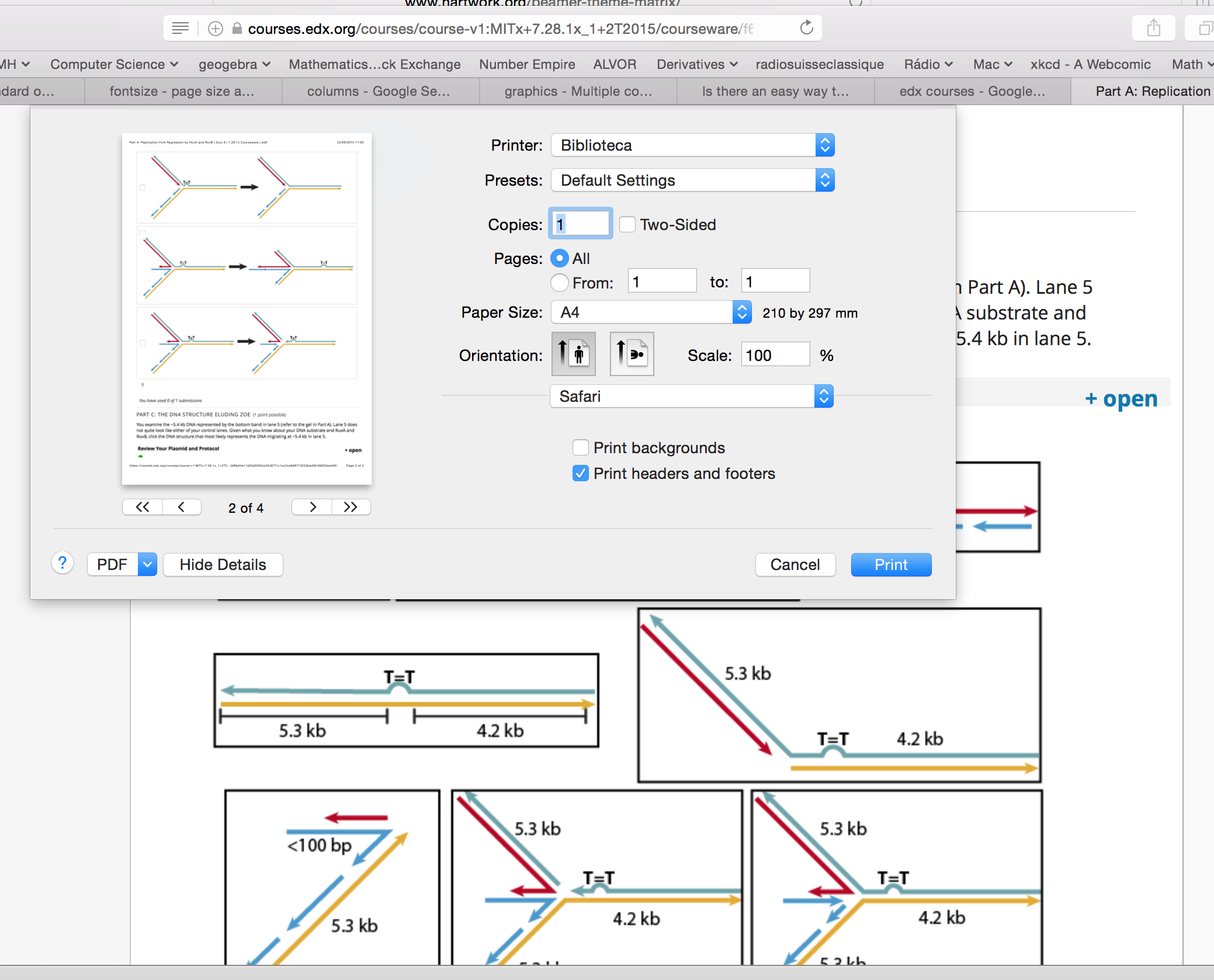 Just so you know, I'm using a new iMac with Yosemite installed. I'm trying to print or otherwise save web pages for courses I'm taking online at ed.X, along with Coursera, which sometimes show similar problems. I try and print exams before I start them and I fill them in on hardcopy. So my first goal is to print them to my Canon printer, which fails, but I've also found that exporting or printing these same web pages to a pdf file also shows the exact same rendering problem. Both Safari and Chrome browsers are the same, neither work. The only solution I've had is to use OS X Grapper and print the missing content from Grabber, page by page, which is very tedious.