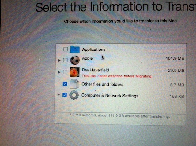 Just a comment on this one.. you want to migrate the files and but you must be careful about moving applications.. I deselected applications because I do not want to mess up this computer since it is another user.. I will manually install needed applications.