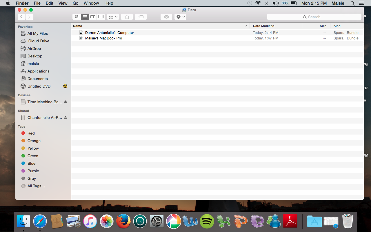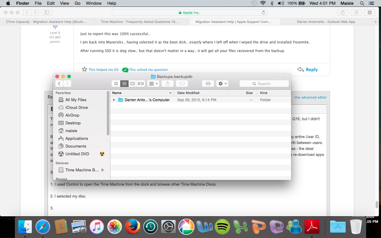 Is the wife's computer running Yosemite?? If not what OS is it running??