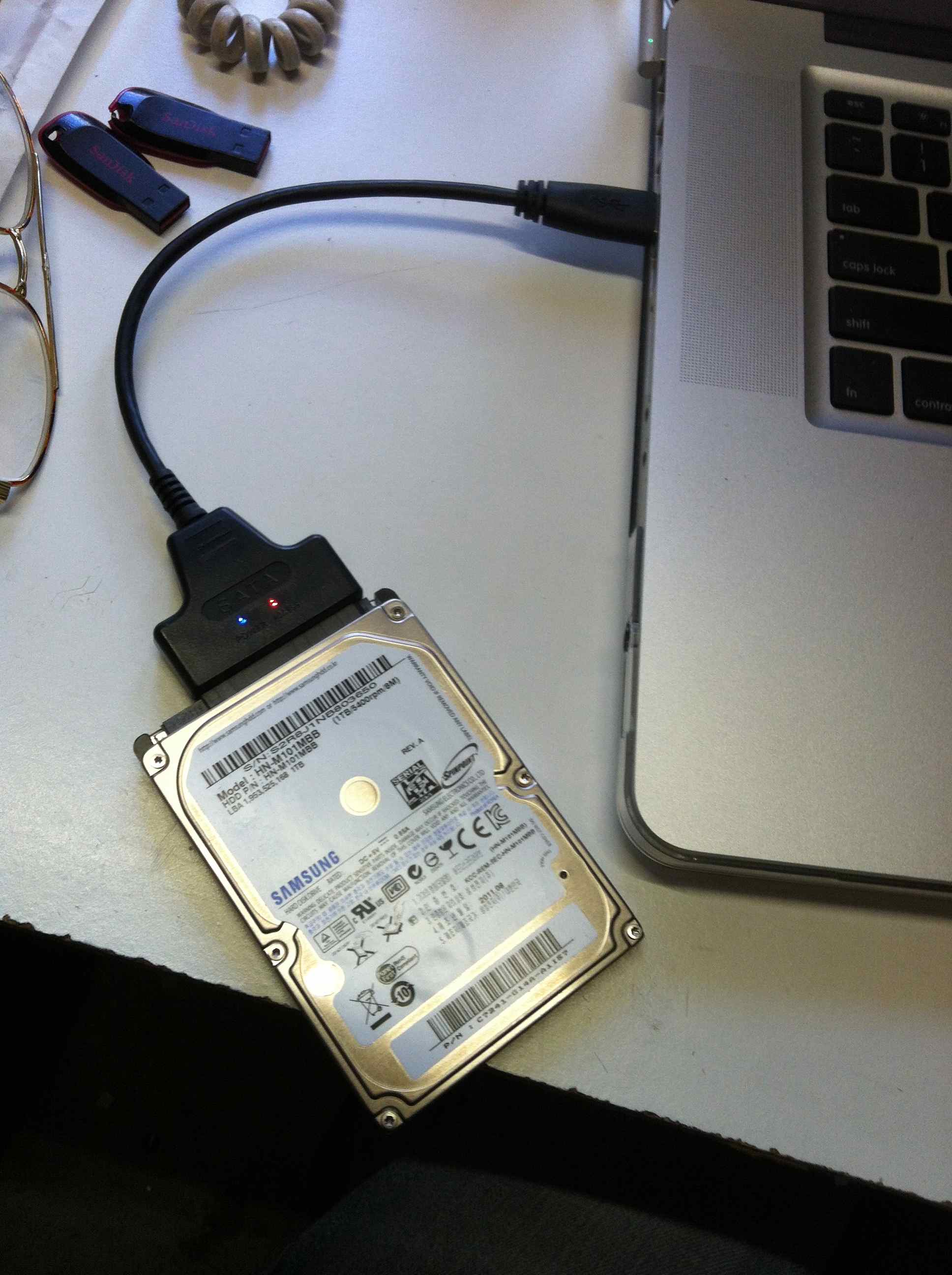I used a 2.5" drive with a USB to SATA cable so this can be cheaply done.. but go and buy yourself a drive if you don't have one. Not like mine a proper external unit.