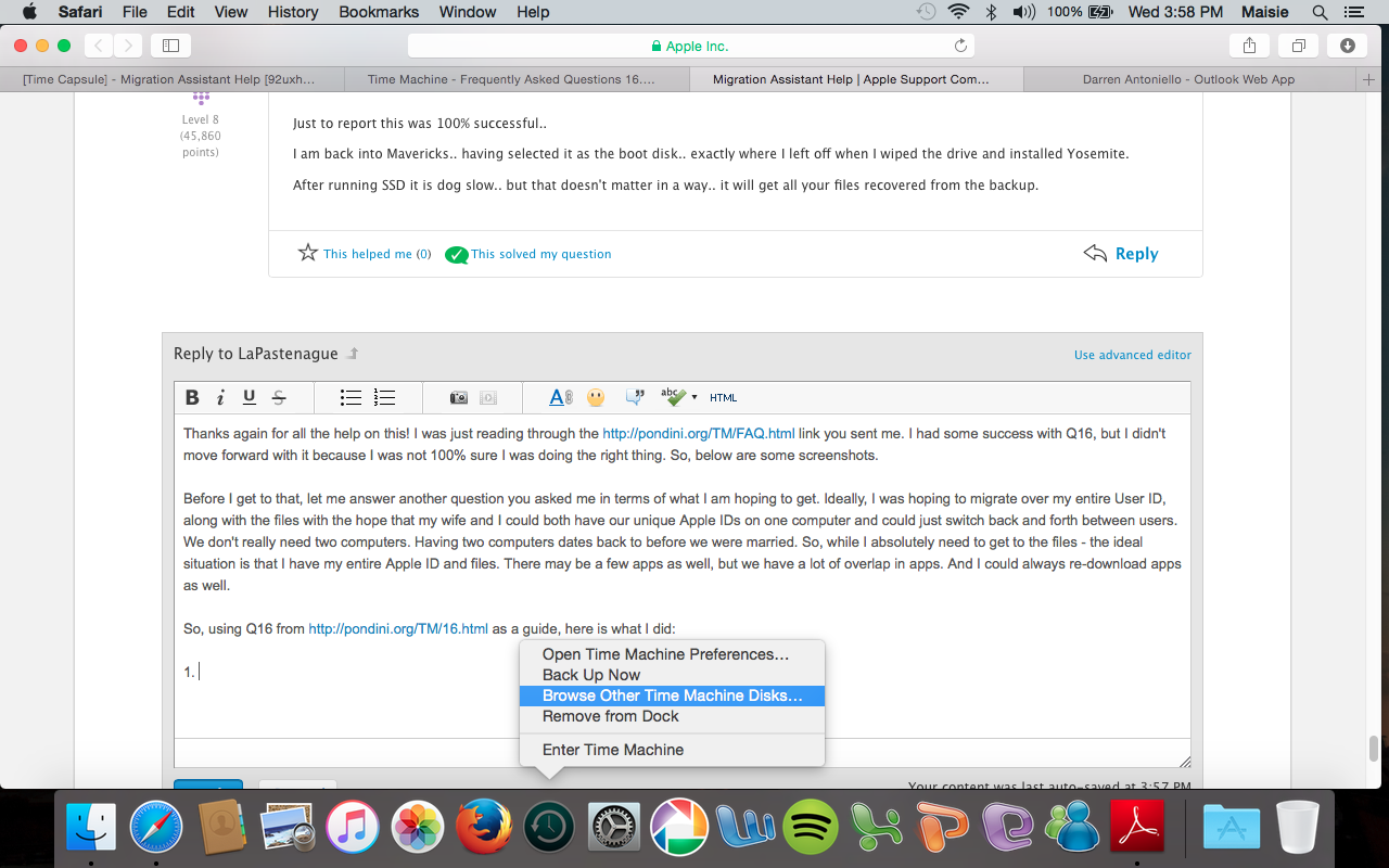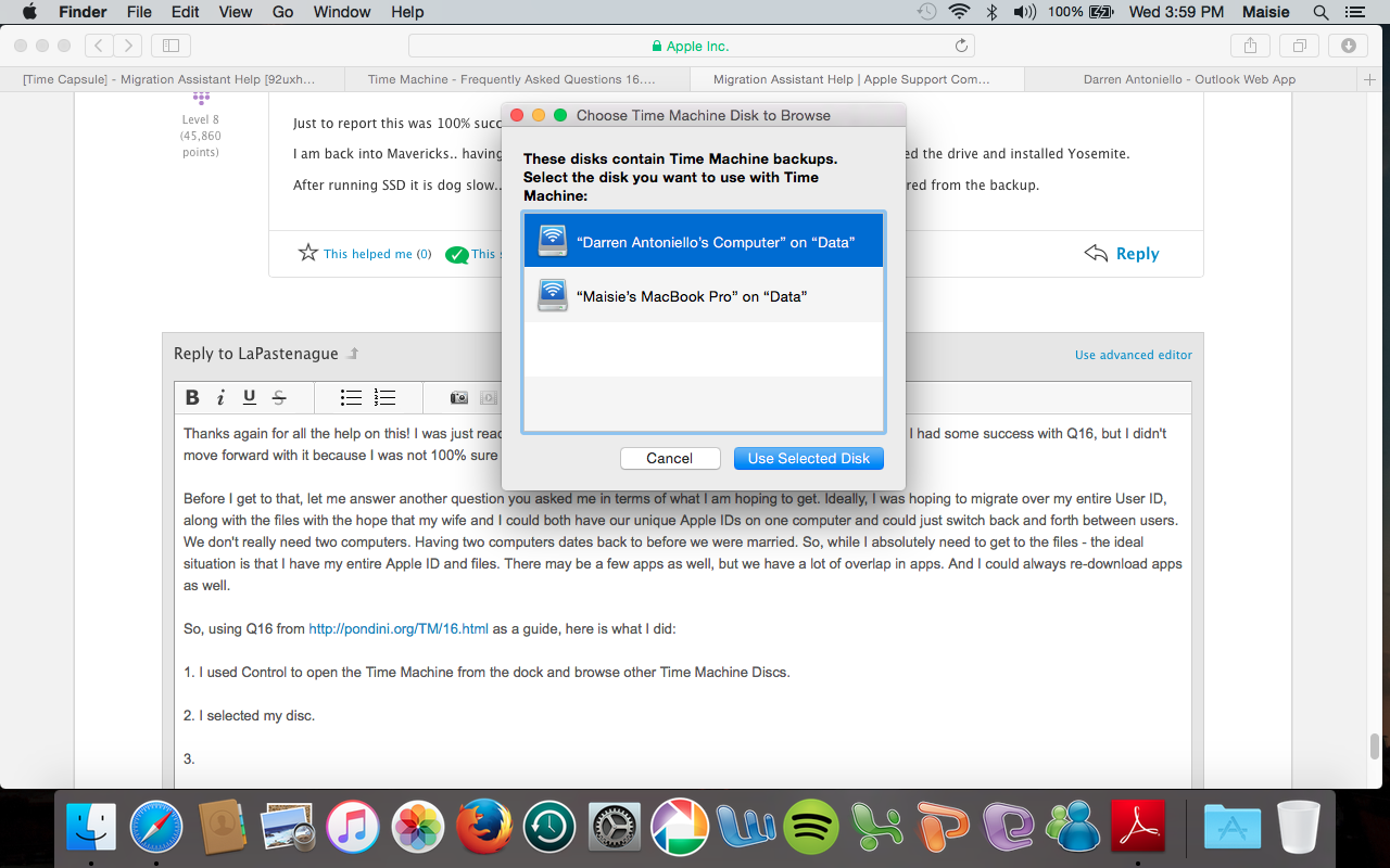 Before I get to that, let me answer another question you asked me in terms of what I am hoping to get. Ideally, I was hoping to migrate over my entire User ID, along with the files with the hope that my wife and I could both have our unique Apple IDs on one computer and could just switch back and forth between users. We don't really need two computers. Having two computers dates back to before we were married. So, while I absolutely need to get to the files - the ideal situation is that I have my entire Apple ID and files. There may be a few apps as well, but we have a lot of overlap in apps. And I could always re-download apps as well.