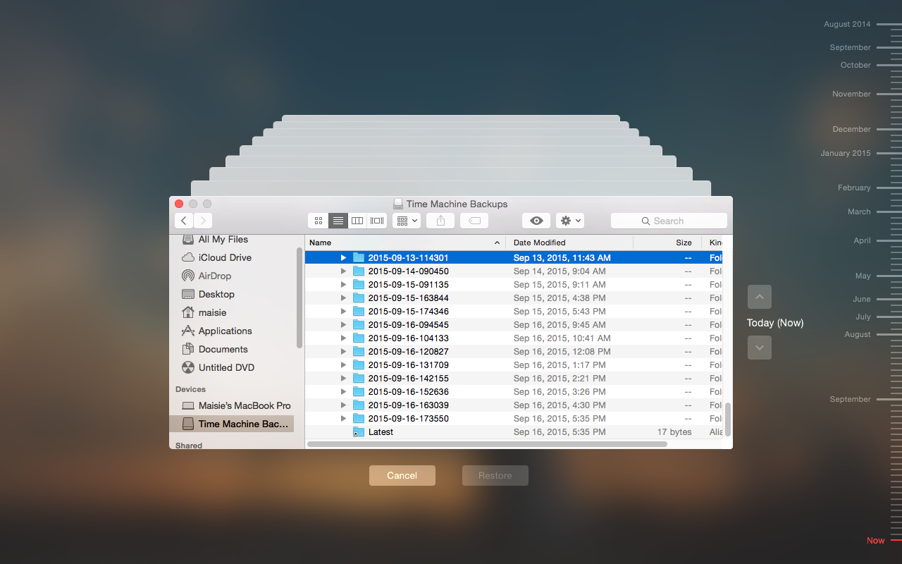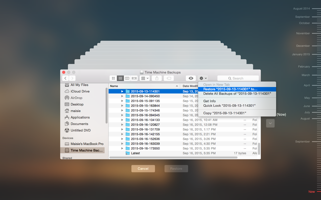 1. I used Control to open the Time Machine from the dock and browse other Time Machine Discs.