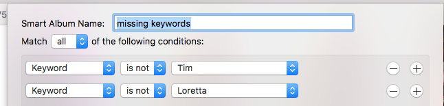 As smart albums are based on rules, include negative conditions ("is not"), and keywords are so fundamental to managing increasingly large libraries, it's baffling that Apple have decided not to include a negative rule for keywords.
