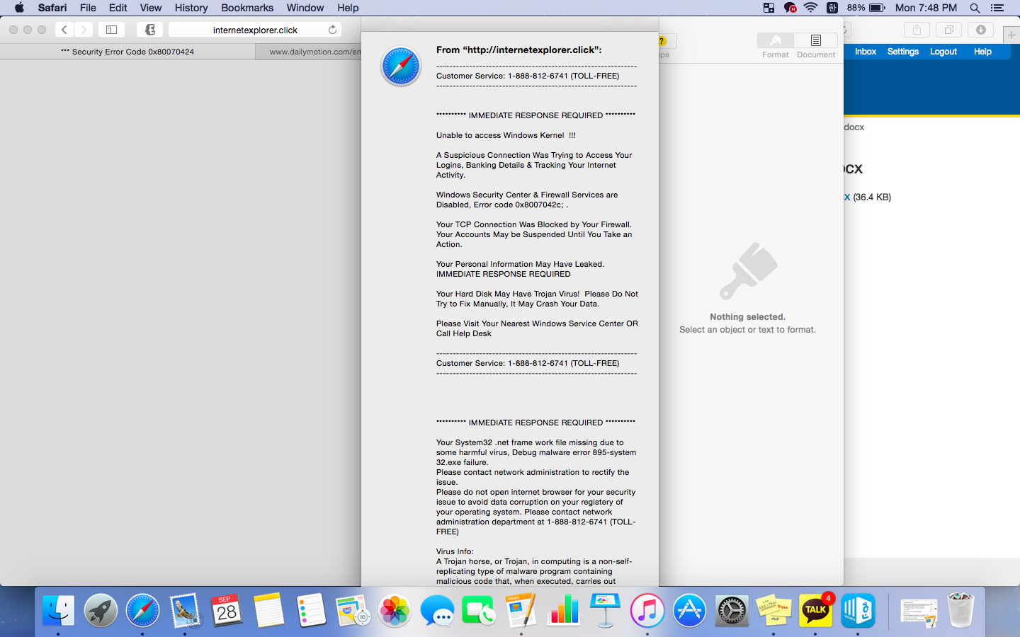 I'm so scared. There was a customer service number on pop-up which is 888-812-6741