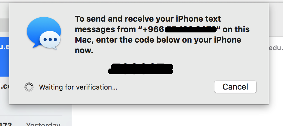 Also, while in Safe Mode, on my phone in the Settings > Messages > Text Message Forwarding I was able to turn back on my computer, and my computer successfully received the verification code.