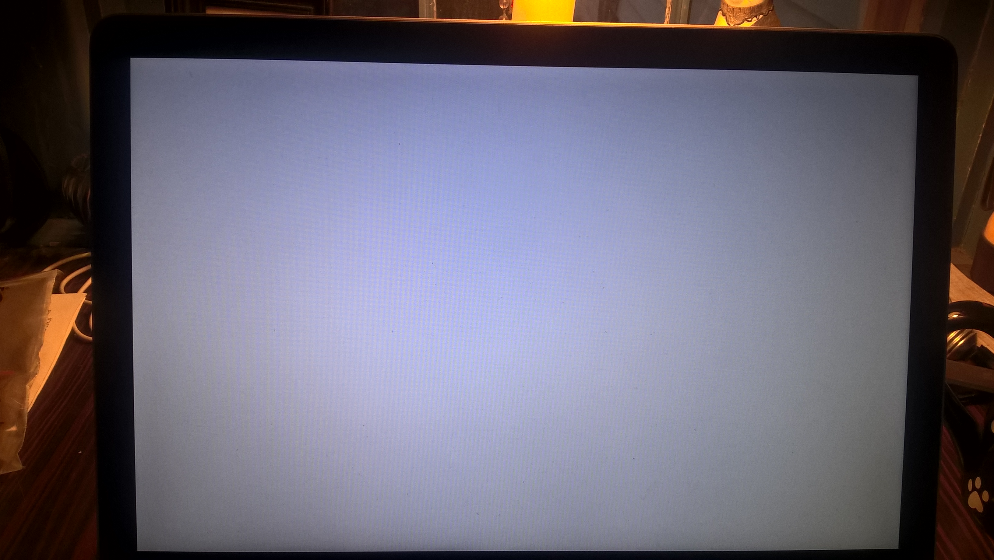 Hope you can see the difference in the images. The top one is what I get now when I startup - blue horizontal lines but still legible. The 2nd is the smooth screen that I think everyone calls the blue screen of death. I can go to terminal using command S and to disk option with the option key, but right back to the blue lines when I choose the hard drive.