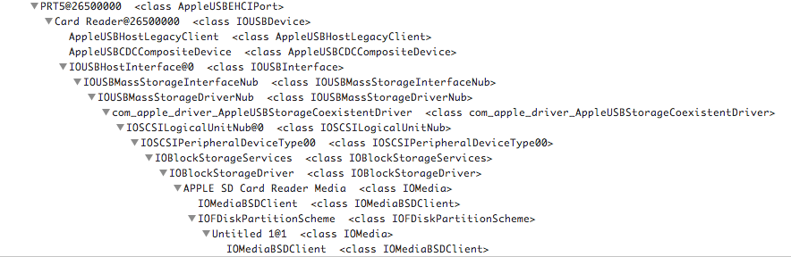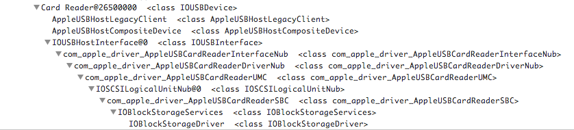 while the SD Card Reader has its own driver, AppleUSBCardReader, which is called instead