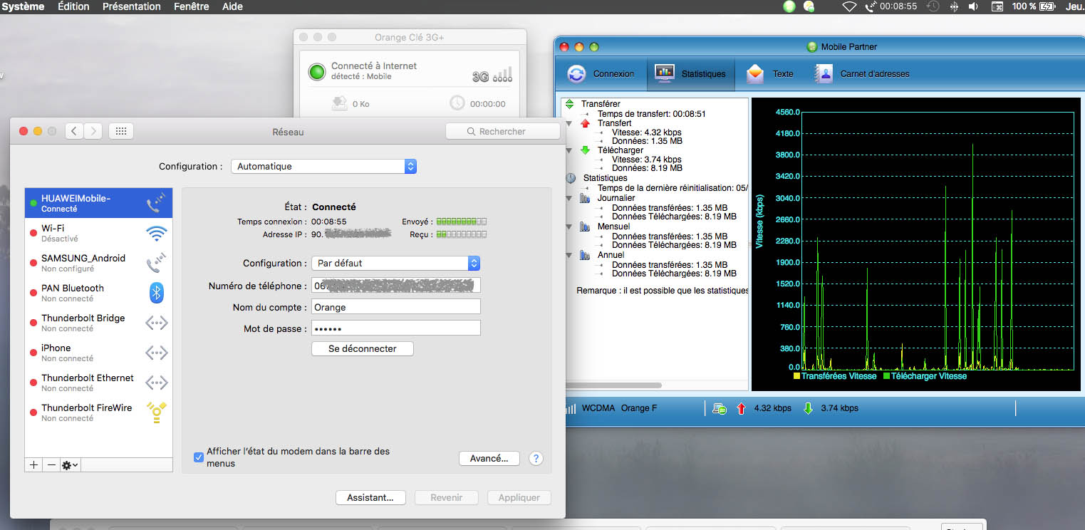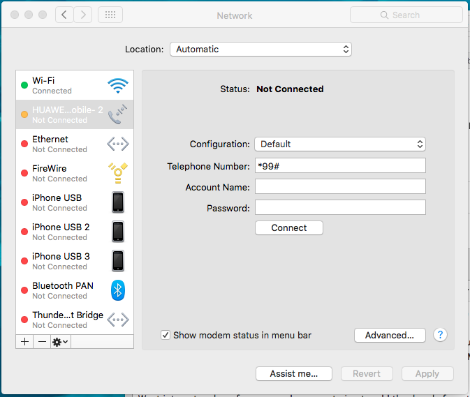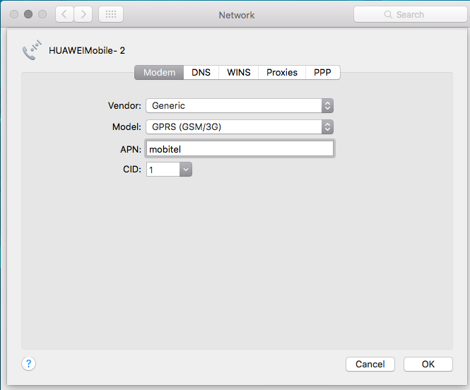 Find Mobile Partner for Mac 10.11 and download. It's a very good software, mobile carrier independent that allows you to create multiple profiles (if you know the relevant APNs) and use different SIMs from different cellular networks if your modem is unlocked;