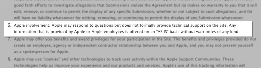They may very well read, but do not formally provide technical support through this community. And the terms that you agreed with to be here, speak to asking questions about how/why Apple does what they do.