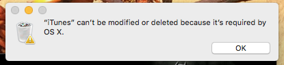 If you get the [ "iTunes" can't be modified or deleted because it's required by OS X. ]