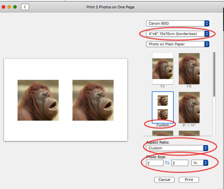 In general cropping will set the proportions of the photo and the actual dimensions are set when it is printed --- for a 2" x 2" square passport photos you can crop to any square shape - 1x1 - 2x2 - 25x25 and then when you print you set the print size as 2"