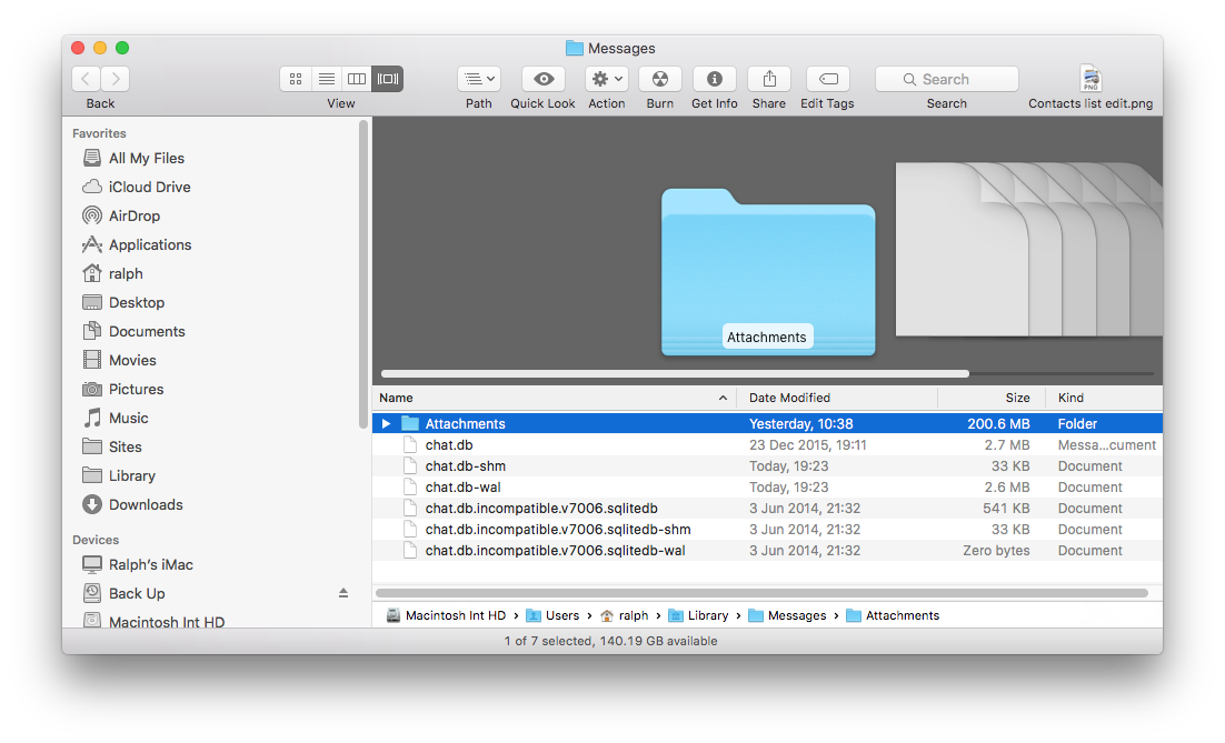 iMessages are also stored in the iMessages history databases in ~/Library/Messages and the three chat.db items there.
