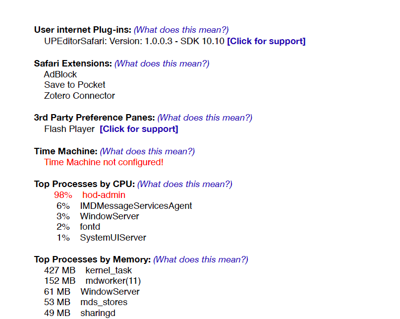 3. Below are instructions to run a UNIX shell script, a type of program. As I wrote above, it changes nothing. It doesn't send or receive any data on the network. All it does is to generate a human-readable report on the state of the computer. That report goes nowhere unless you choose to share it. If you prefer, you can act on it yourself without disclosing the contents to me or anyone else.