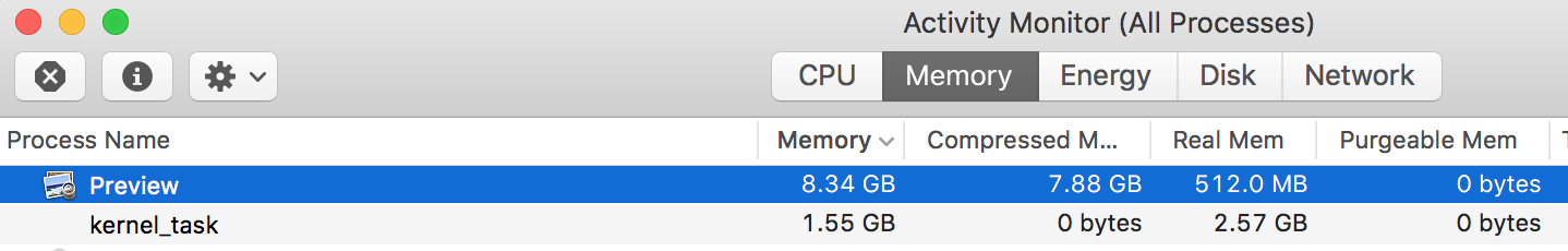 The Preview app in El Capitan has serious memory leak problem. Open a 100MB pdf file, scroll for a while, it will easily consumes giga bytes of RAM! Once it used 8G!
