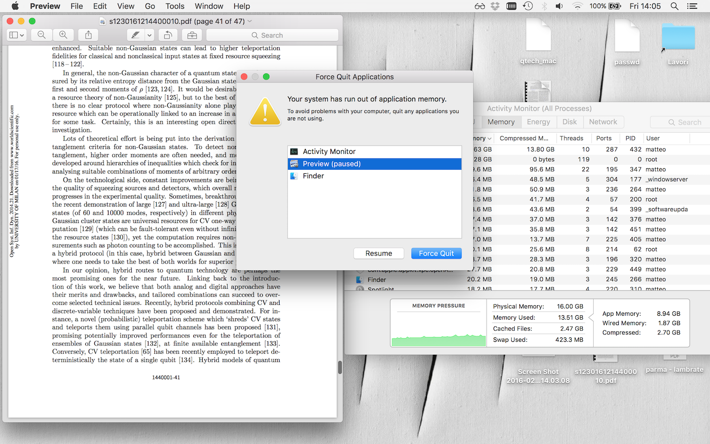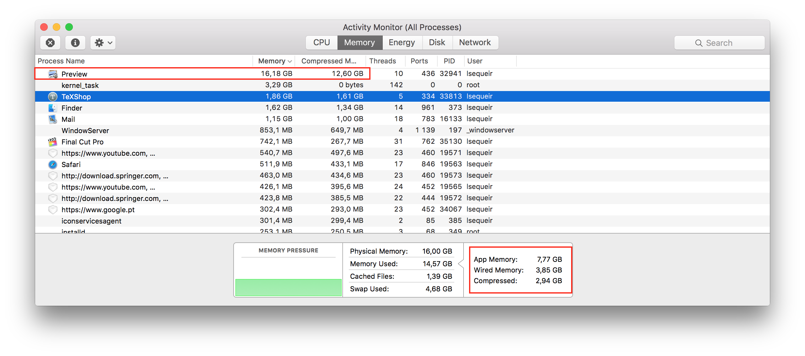 2) At the bottom right, ALL the compressed memory (not just that related to Preview) uses just 2.94GB