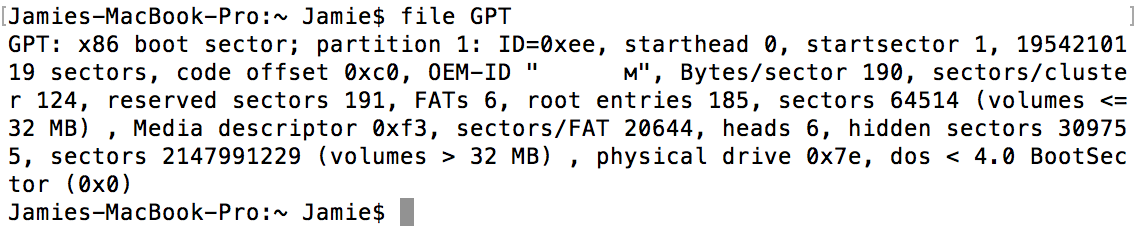 In your local directory, there should be a file called GPT. In Terminal if you type file GPT you will see the information. Here is an example.
