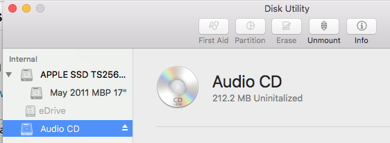 How does El Capitan Disc Utility permit a user to erase (ready to re-write) a rewritable CD (CD-RW)? The "Erase" option is greyed out, so what to do? is this an oversight, a removed functionality, or something that has moved elsewhere?? Ideas / suggestions. anyone??