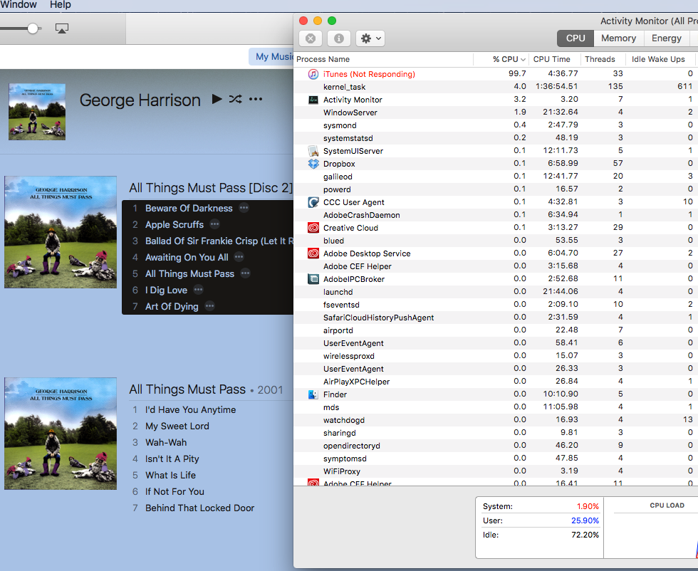 When I play a song, it starts immediately, then I get the spinning wheel for 2-3 minutes...same thing when dragging a track into a playlist, editing a track name, creating a playlist, editing start/stop time etc...it's impossible to use the program, and the lag time between commands is ridiculous.