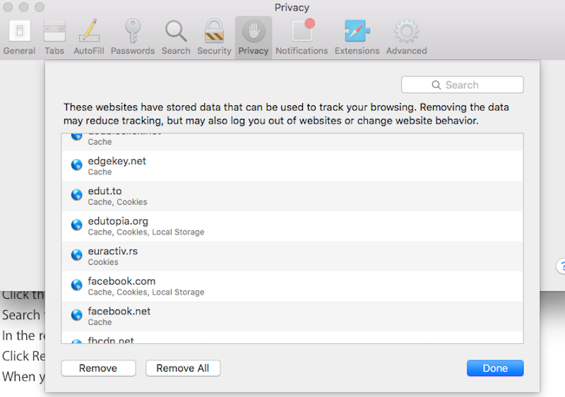 .....Use these steps to remove cookies, cache, and other data stored by Safari for a specific site:...
