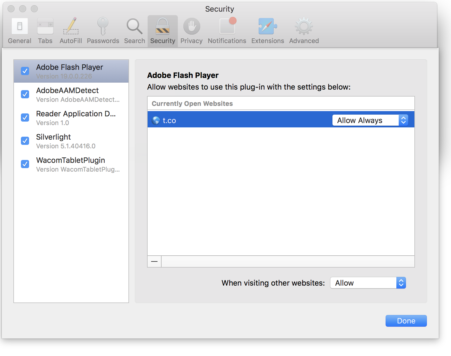 For the time being my t.co links started working again after the always allow option... Did a (2015 iMac) restart and I had to close and open Safari few times. Hope Apple wil fix this soon....