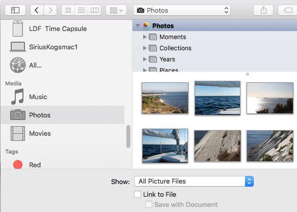 My kids have been on my computer and must have done something to it. I can no longer choose photos from "photos" (previously iPhoto) to insert into a word document. When I click insert photo, I used to be able to find my "photos" in the media section of finder under photos. The only thing listed there now is photo booth. How do I get access to photos there again?