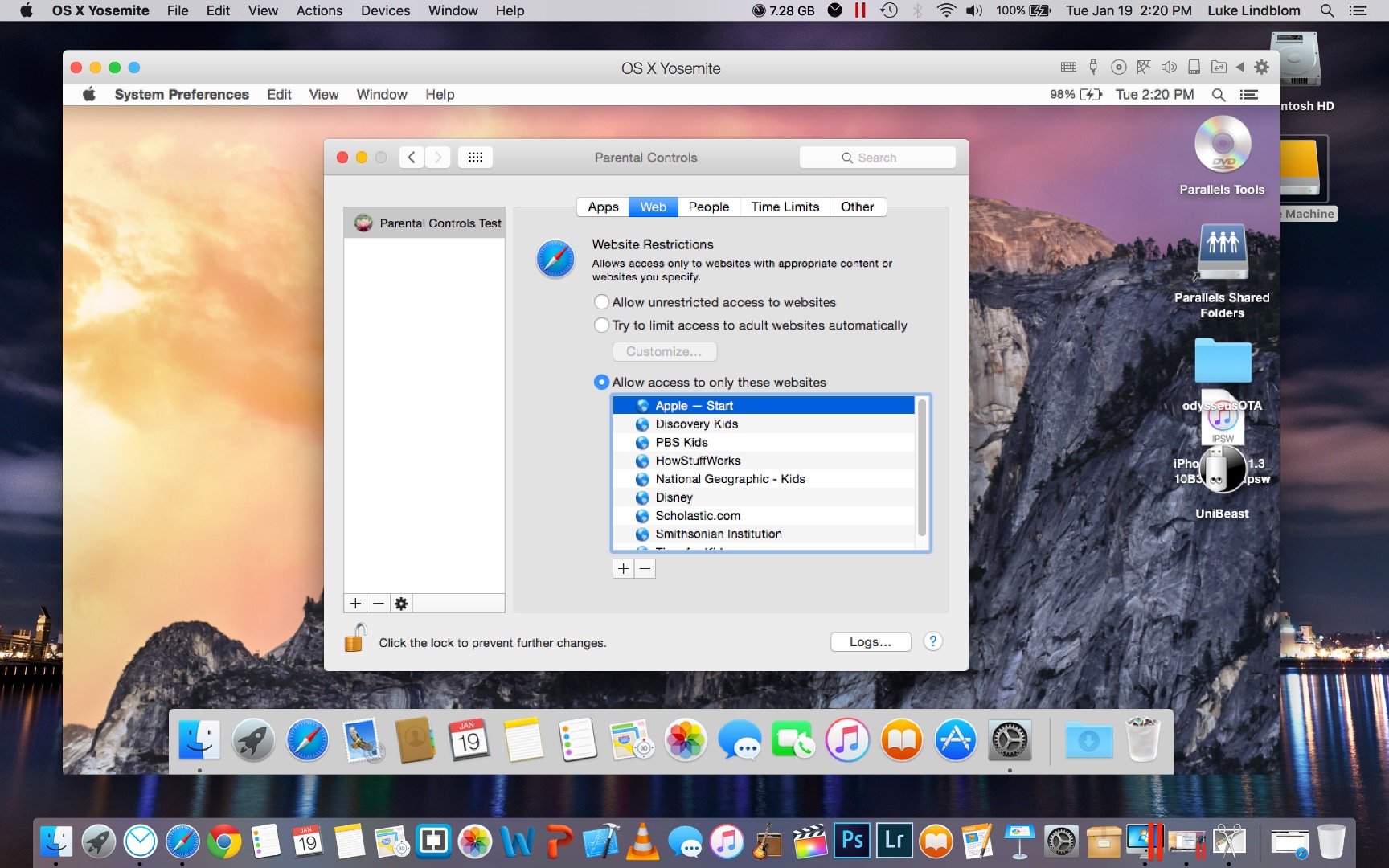 6. Go to system preferences and parental controls and change the settings to what you want them to. Now it should be saving. Lock the parental controls.