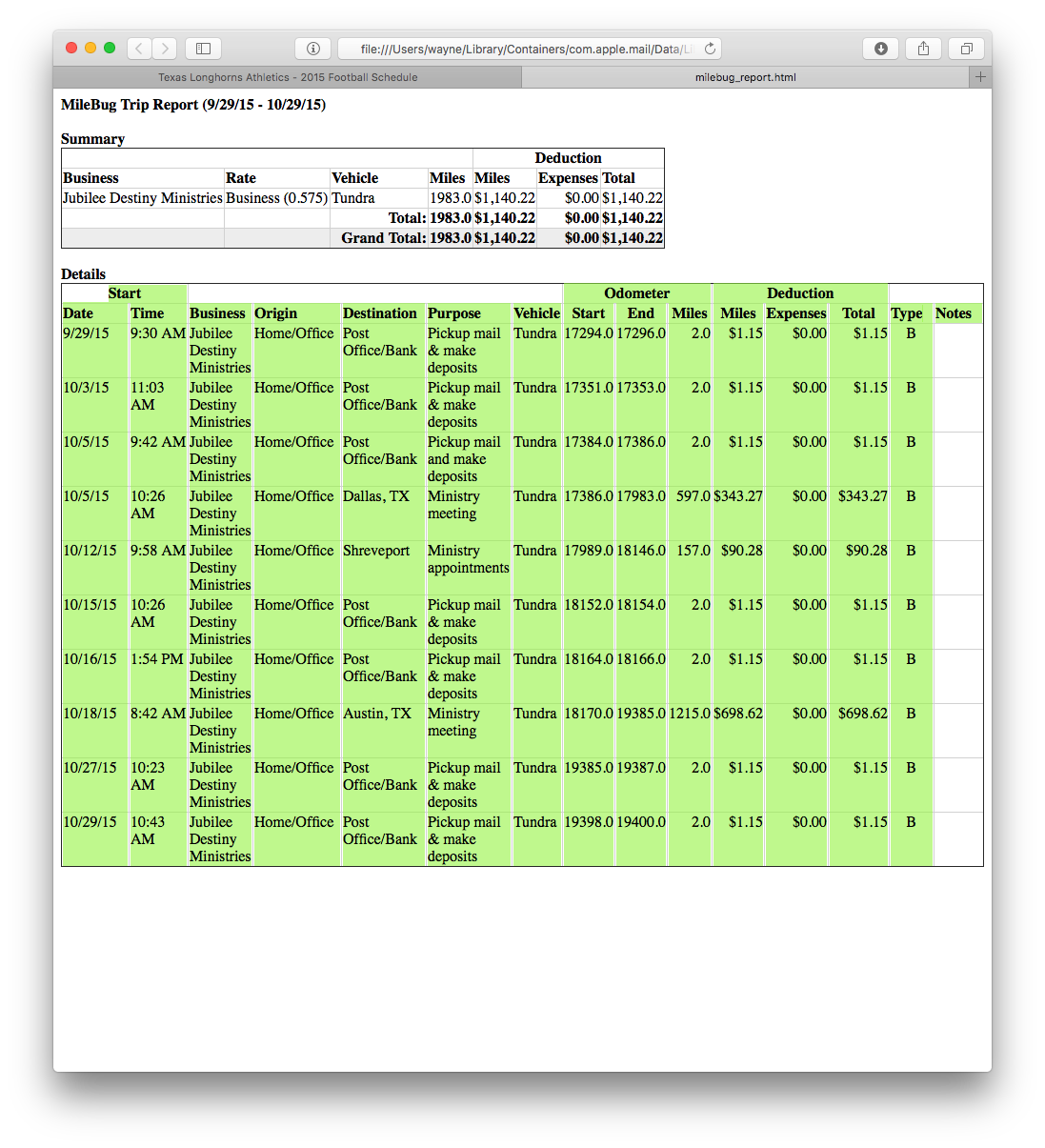By the way, when I use to send the MileBug report to my pc it could be copied and pasted perfectly into my Excel file.