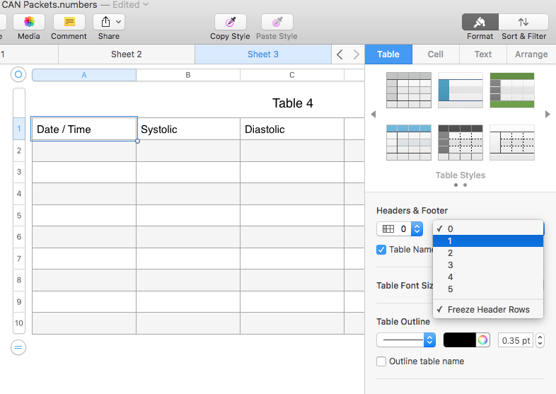 Numbers Template to monitor Blood Pressure