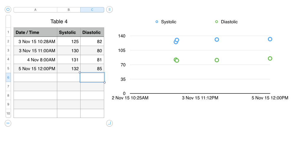 Now add data to the table as you measure blood pressure: