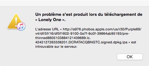 Litterally : "A problem occurred when downloading Lonely One. The URL address ... can't be found on the server".