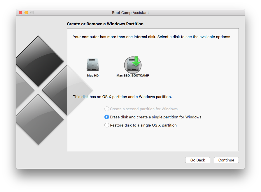 I am currently booted via the OSX on my SSD, but can reboot via the OSX on the HDD if necessary. Why would I need to disconnect the HDD during Windows installation on the SSD? If necessary I could install Windows on the HDD but I would prefer to use the faster SSD if possible.