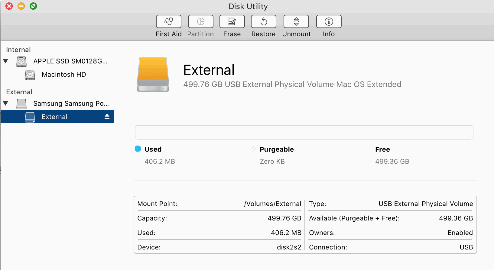 Mount point : /Volumes/External