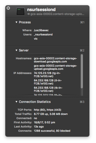 It seems to me some sort of backup service is doing this, but I hope there's not some sort of leeching app doing nefarious things. Has anyone seen or know what app might be accessing gcs-us-00001.storage.googleapis.com via nsurlsessiond and cloudd?