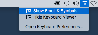 Finally, you don't have to add the Character Viewer to the Input menu (or show the input menu at all). All the Edit menus have Emoji & Symbols right in the App.