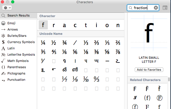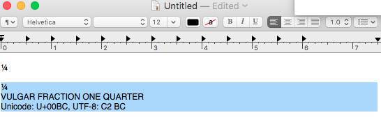 How do I write a fraction (1/2, 1/4, etc.) in correct form in Mail? I have OS X 10.11.1.