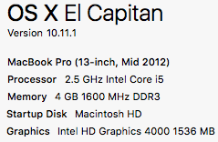 MacBook Pro (13-inch Mid 2012), OS X El Capitan (10.11.1)